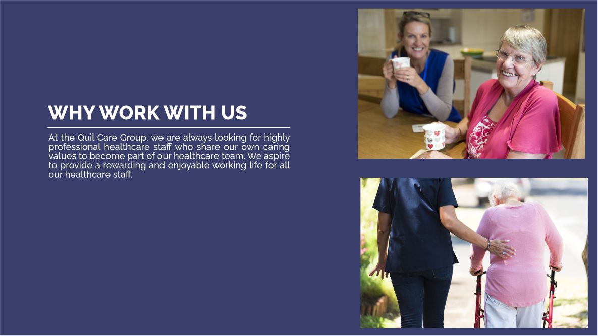 Quil Care Group is registered with the Care Quality Commission (CQC) and supplies experienced high-quality healthcare professionals to work in NHS and private hospitals, nursing and residential homes and hospices, as well as providing home care and support workers to people in their own homes.